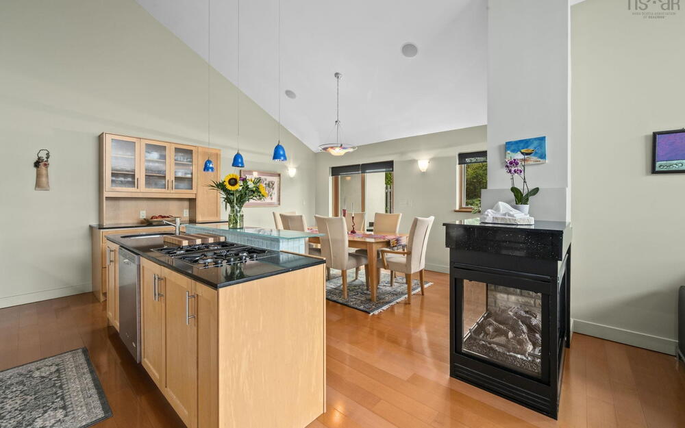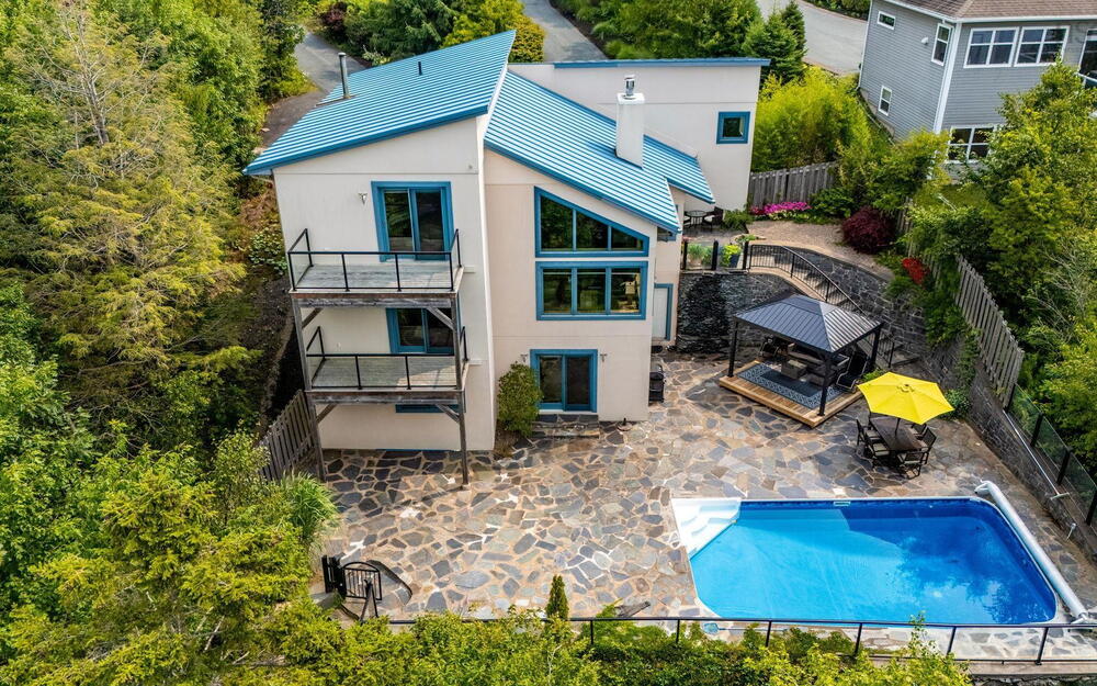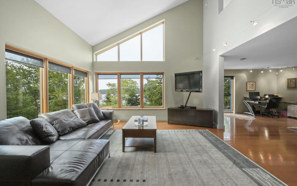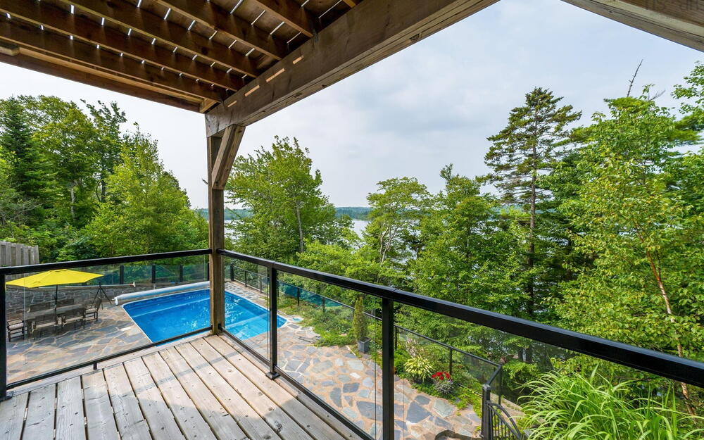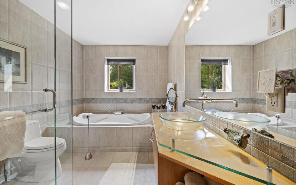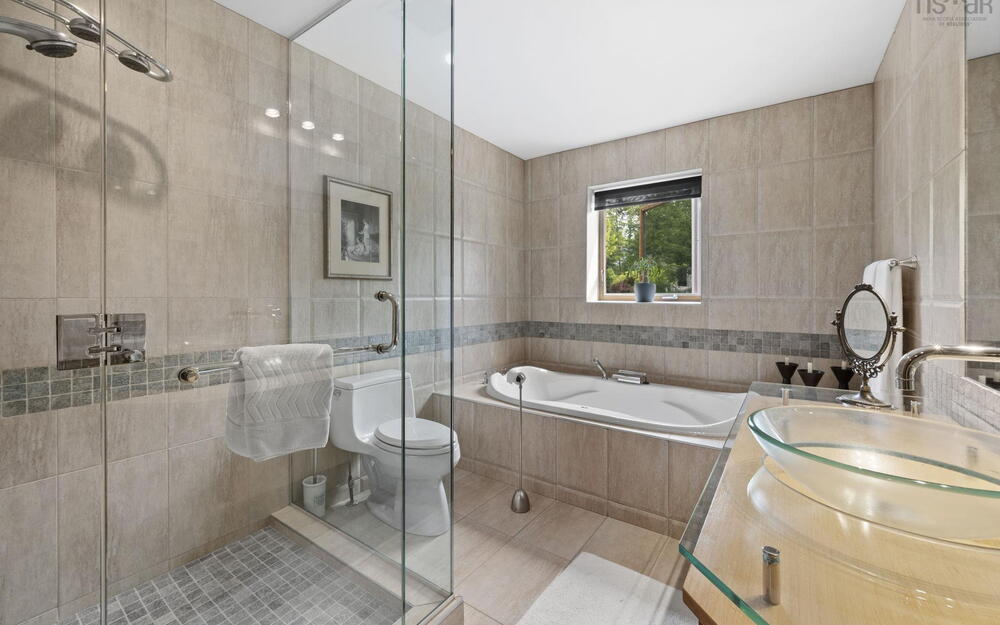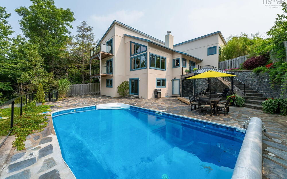 Elevate your lifestyle in this breathtaking lakefront masterpiece, perfectly situated just 10 minutes from Halifax and 15 from the airport. Combining the architectural integrity of ICF construction with 65 ft of pristine water frontage, this 3,200 sq. ft. sanctuary offers panoramic lake views from every level. The heart of the home is an open-concept gourmet kitchen and firelit living area, designed for seamless entertaining. Retreat to a lavish primary suite featuring a spa-inspired ensuite, private deck, and in-suite laundry, or utilize the clever flex room with a built-in Murphy bed. The main level also features a newly renovated bedroom with private balcony. The lower level serves as a high-end guest retreat or private in-law suite, complete with a kitchenette and 4pc bath. Step outside to your private resort: a heated in-ground pool with a tranquil waterfall, elegant flagstone patios, and a lakeside gazebo perfect for sunset cocktails. Whether you're hitting the links at the nearby golf community or enjoying a quiet morning by the water’s edge, this property delivers a world-class experience. Don't just buy a home—invest in a destination. View the virtual tour today and prepare to be captivated by this rare lakeside gem. Please note the virtual tour does not depict recent renovation of bedroom addition on main level.